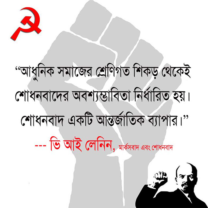 আধুনিক সমাজের শ্রেণিগত শিকড় থেকেই শোধনবাদের অবশ্যম্ভাবিতা নির্ধারিত হয়। শোধনবাদ একটি আন্তর্জাতিক ব্যাপার। জার্মানিতে গোঁড়া আর বের্নস্তাইনপন্থিদের মধ্যে, ফ্রান্সে গেদপন্থি আর জোরেসপন্থিদের (আর এখন বিশেষভাবে ব্রুসপন্থিদের) মধ্যে, ইংল্যান্ডের সোশ্যাল-ডেমোক্রাটিক ফেডারেশন আর ইন্ডিপেনডেন্ট লেবার পার্টির, বেলজিয়ামে ব্রুকের আর ভান্দের্ভেলদে’র মধ্যে, ইতালিতে ইন্টেগ্রালিস্ট আর সংস্কারবাদীদের মধ্যে, রাশিয়া বলশেভিক আর মেনশেভিকদের মধ্যে সম্পর্কটা ঐসব দেশের বর্তমান অবস্থায় বিভিন্ন জাতীয় পরিস্থিতির আর ঐতিহাসিক উপাদানের বিপুল বৈচিত্র্য সর্বত্র যে মূলত একই রকমের তাতে যে কোনো চিন্তাশক্তিসম্পন্ন ওয়াকিবহাল সমাজতন্ত্রীর লেশমাত্র সন্দেহ থাকতে পারে না। বাস্তবিক পক্ষে বর্তমান আন্তর্জাতিক সমাজতন্ত্রের অভ্যন্তরীণ ‘বিভাগটা’ পৃথিবীর বিভিন্ন দেশে একই ধারাতে চলছে; ত্রিশ বা চল্লিশ বছর আগে একই আন্তর্জাতিক সমাজতন্ত্রের ভিতরে বিভিন্ন দেশে বিচিত্র ধারার যে লড়াই চলত তার তুলনায় এটি প্রচণ্ড অগ্রগতিরই সাক্ষ্য দেয়। তেমনি, লাতিন দেশগুলোতে যে, ‘বাম দিক থেকে শোধনবাদ’ ‘বৈপ্লবিক সিন্ডিক্যালিজম’ রূপে গড়ে উঠেছে তাও মার্কসবাদের সংগে নিজেকে খাপ খাওয়াচ্ছে তাকে ‘সংশোধন’ করে: ইতালিতে লাব্রিওলা এবং ফ্রান্সে লাগার্দেল ভুল ভাবে বোঝা মার্কসের থেকে ঘনঘন আর্জি জানাচ্ছেন ঠিকভাবে বোঝা মার্কসের কাছে।